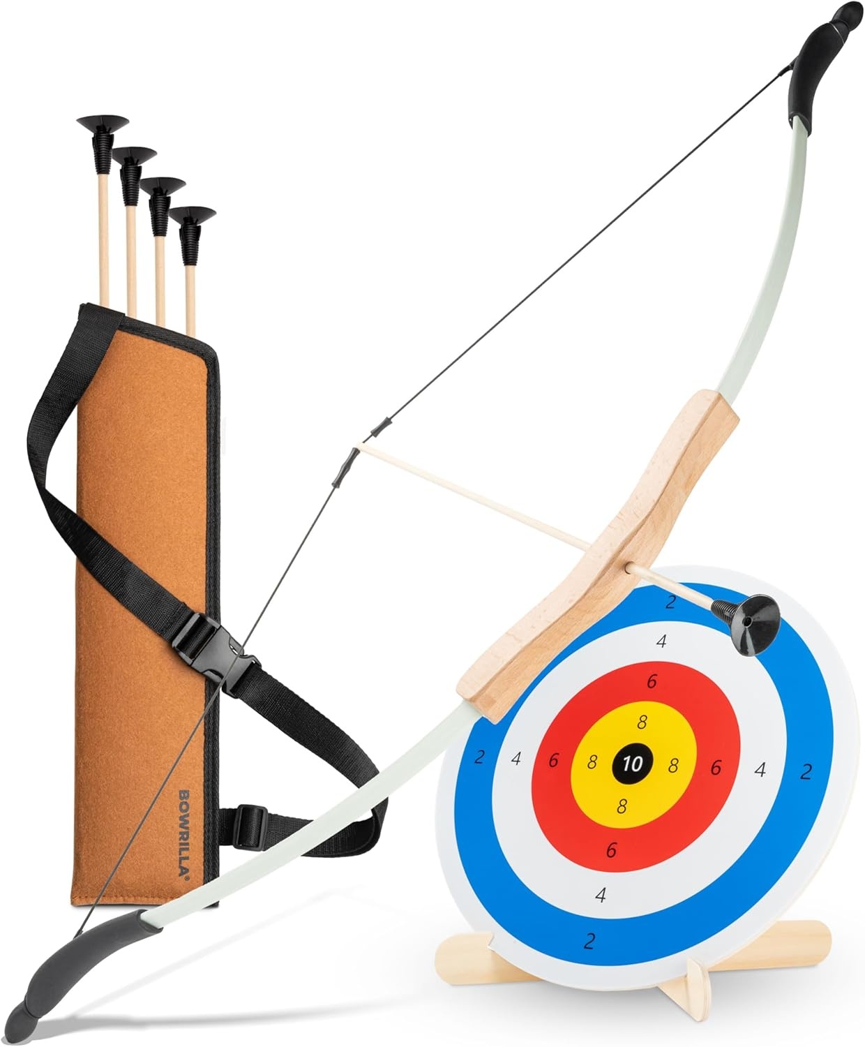 Arc et flèches pour enfants en bois avec 4 flèches à ventouse, cible en bois et carquois - Jeu d'archerie pour 5 ans et plus, intérieur/extérieur, droitier/gaucher