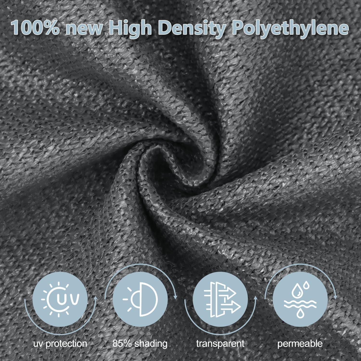 Bâche d'ombrage rectangulaire 2x3m, respirante, protection UV 95%, anthracite