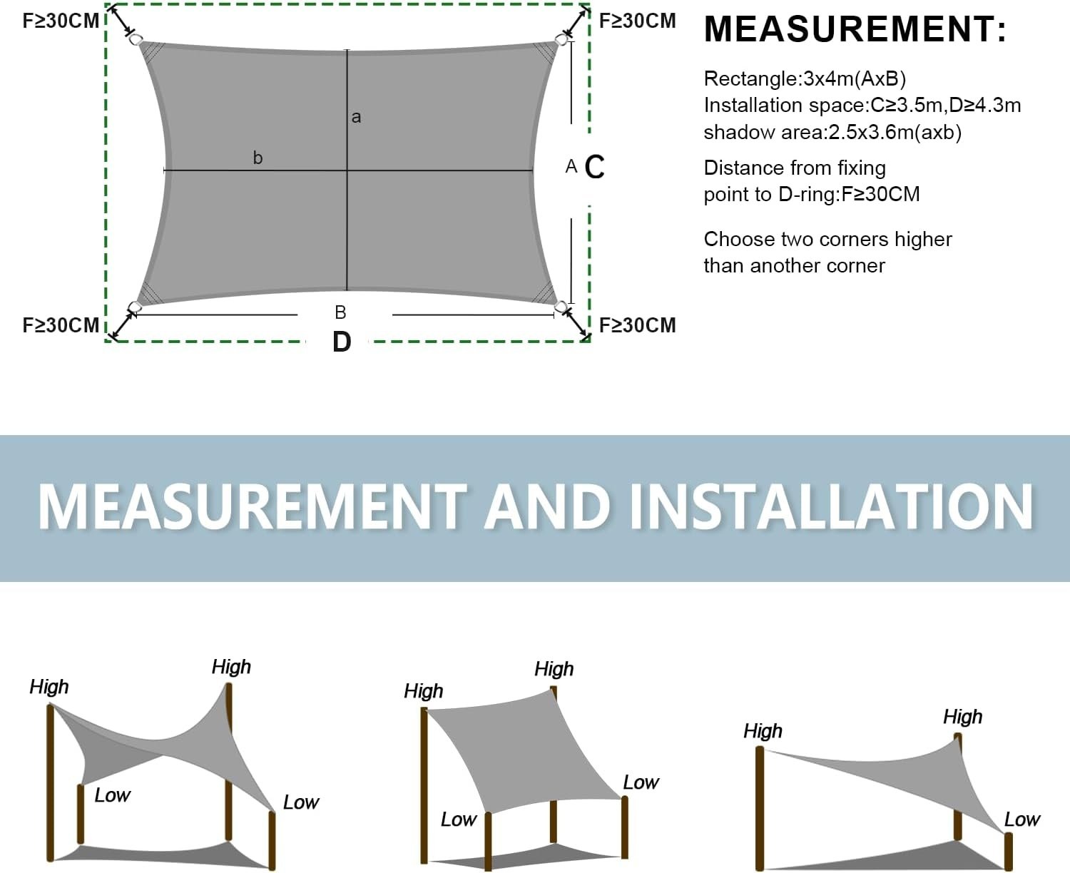 Profitez d'une protection solaire optimale avec cette bâche d'ombrage rectangulaire de 2x3 mètres. Idéale pour votre jardin, terrasse ou patio, elle offre une excellente respirabilité et une protection efficace contre les rayons UV.