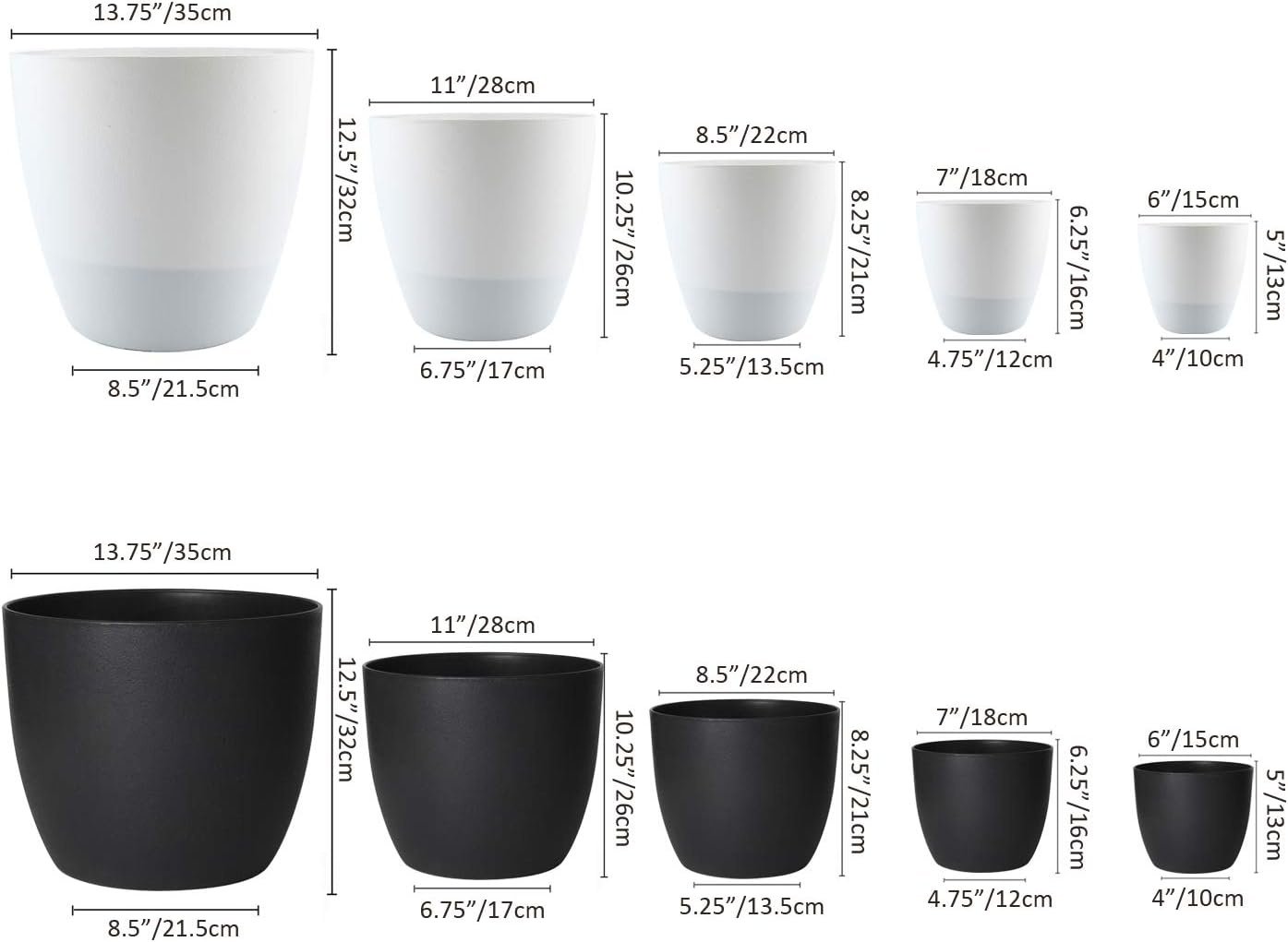 Lot de 4 pots de fleurs auto-arrosants blancs en plastique, 15 cm, pour intérieur/extérieur