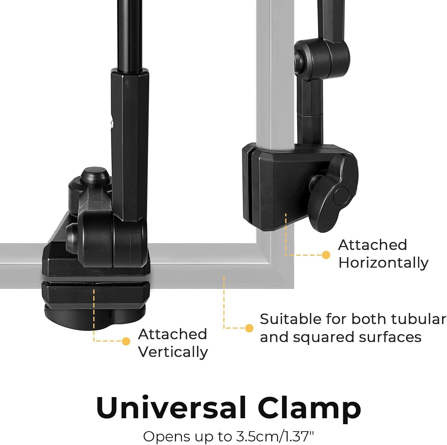 - Pince Universelle Réglable : Pince solide à 360°, s'adapte aux surfaces rondes ou carrées jusqu'à 3,8 cm d'épaisseur.
