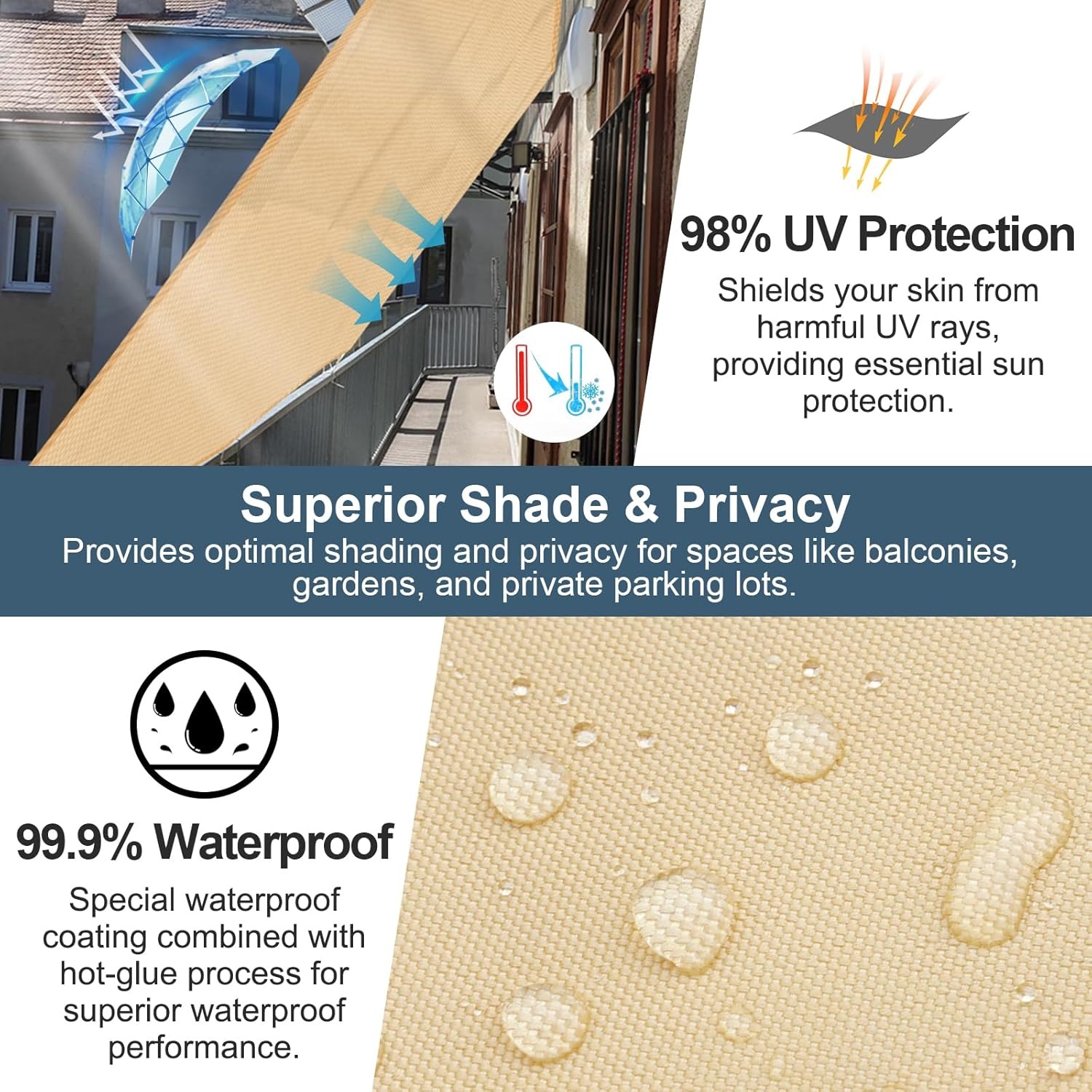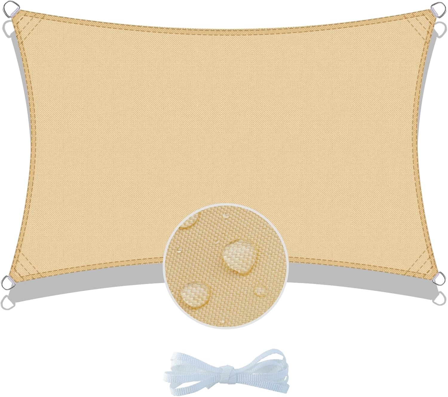 Toile d'ombrage rectangulaire 4x5m Polyester Imperméable Protection Vent & UV, Couleur Sable