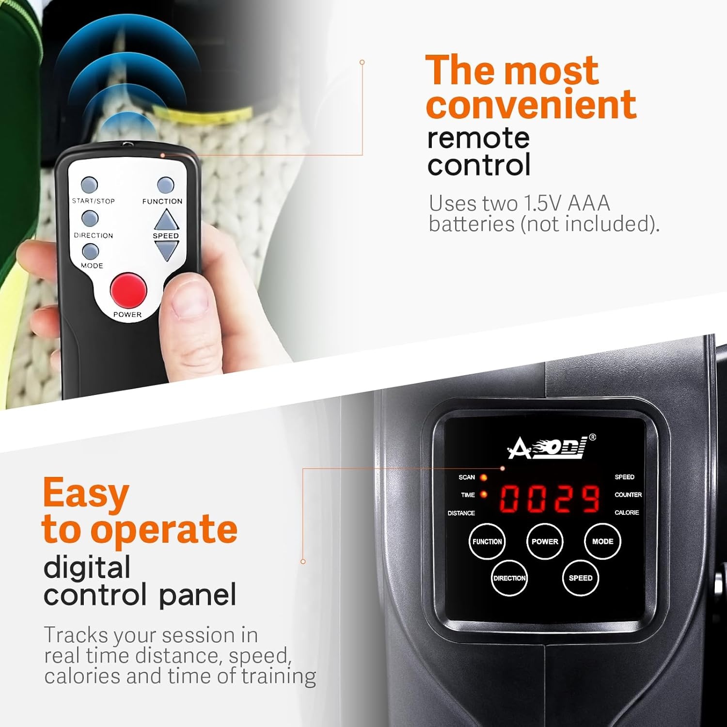 - Écran LCD affichant temps, distance, vitesse, compteur et calories ; télécommande incluse pour un contrôle facile.